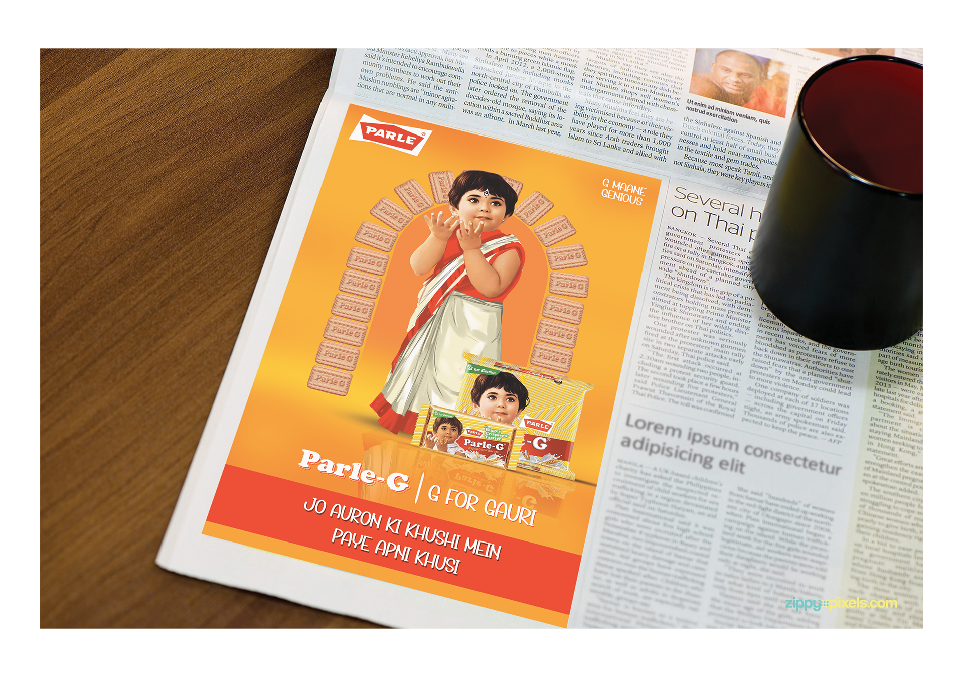 News Paper AD- Parle G (Durga Puja Illustration)